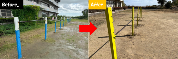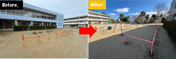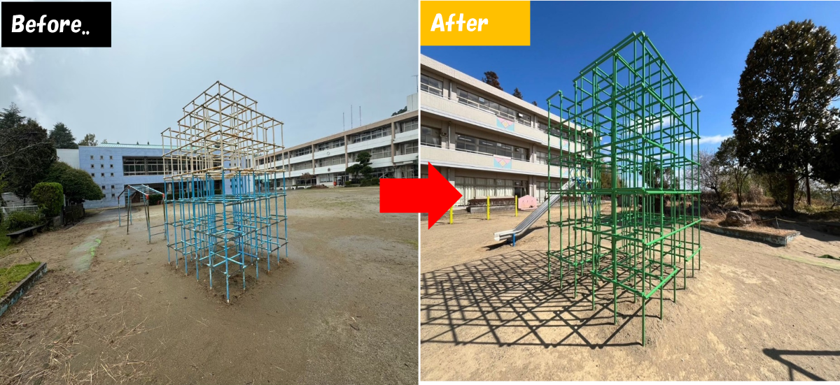 錆が発生し、色が褪せてしまった遊具が、光沢のある鮮やかな色の遊具に生まれ変わりました。